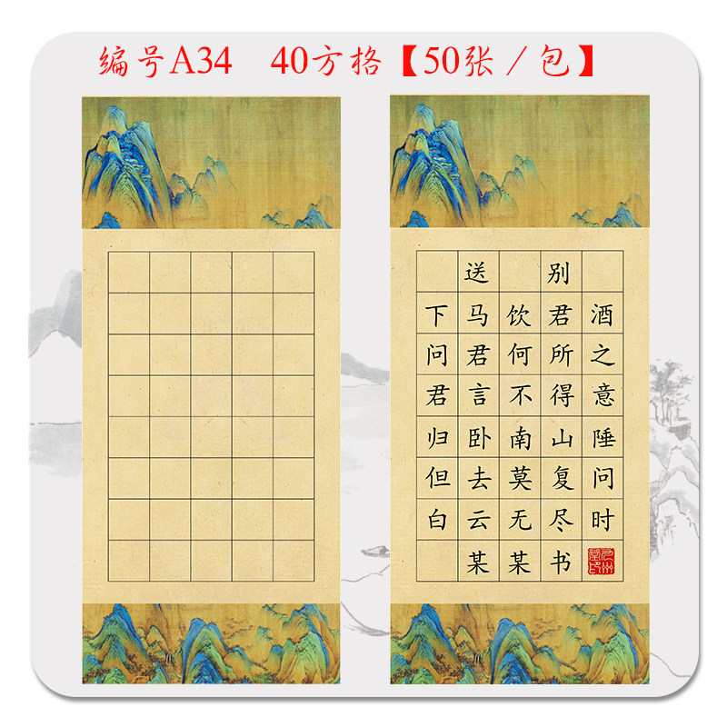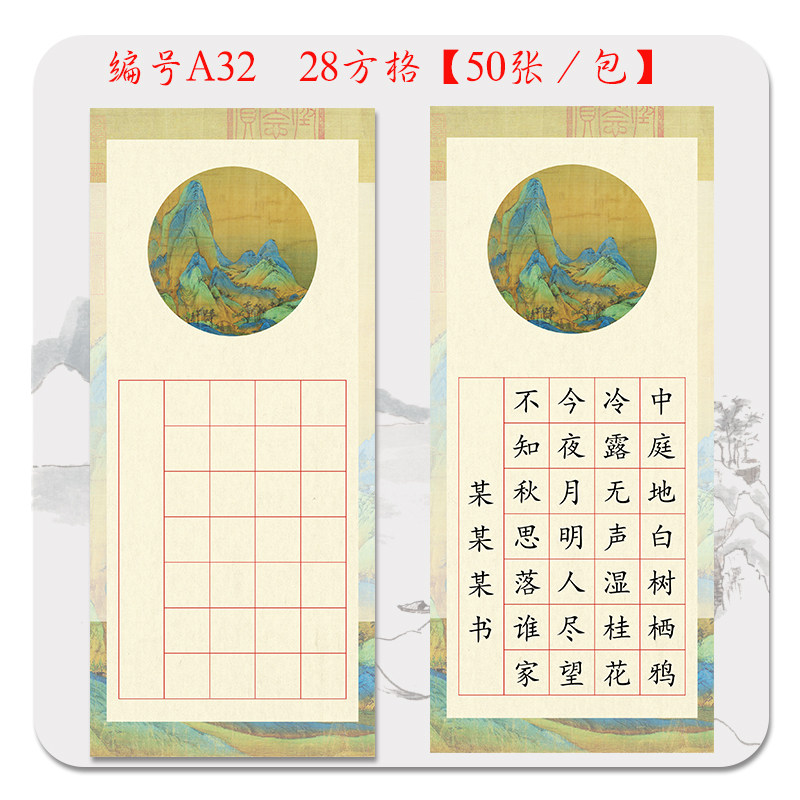 书签纸古典儿童硬笔书法纸五言七言诗田字格方格练习创作展览用纸