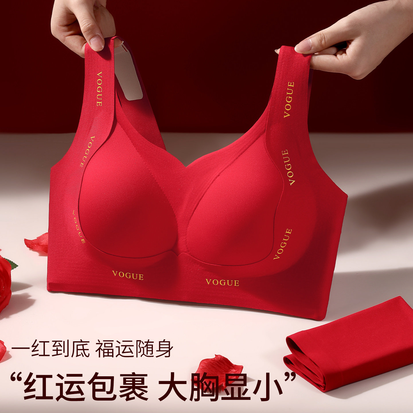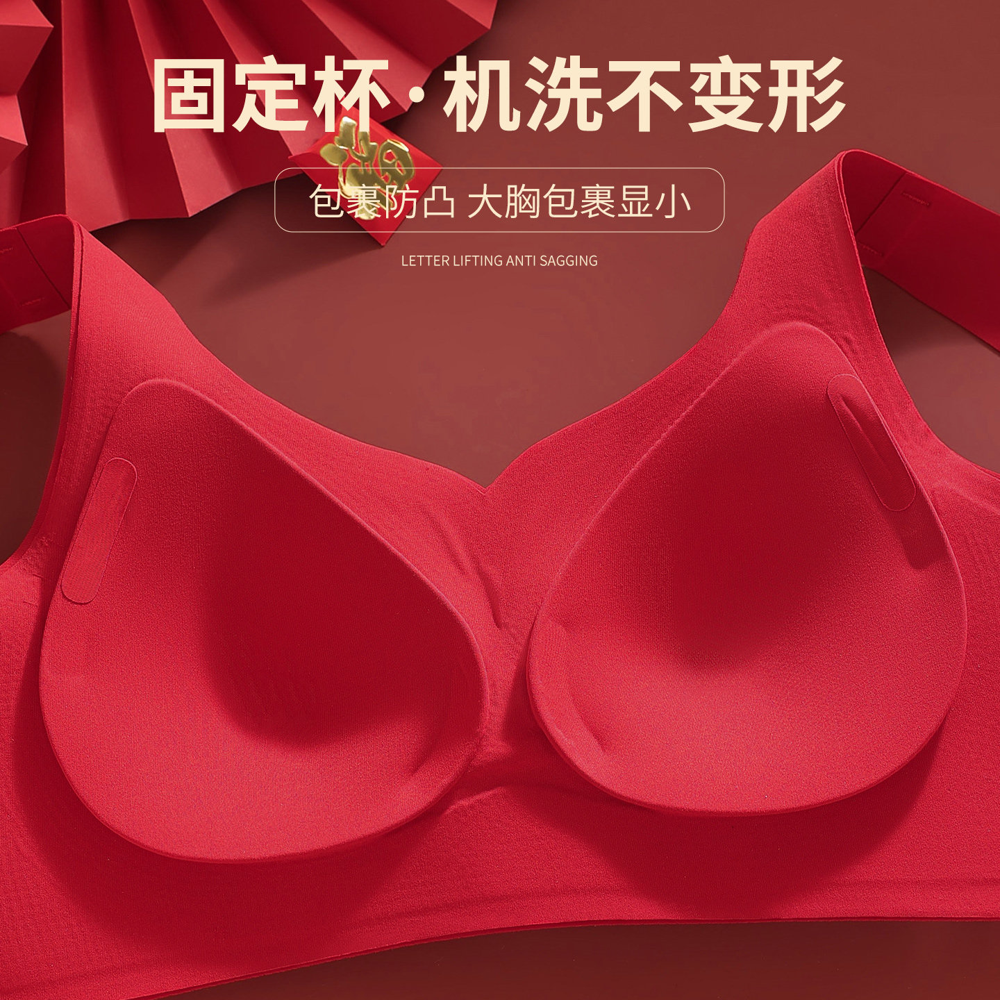 古今本命年红色内衣套装大胸显小文胸调整提拉防下垂大码无痕胸罩