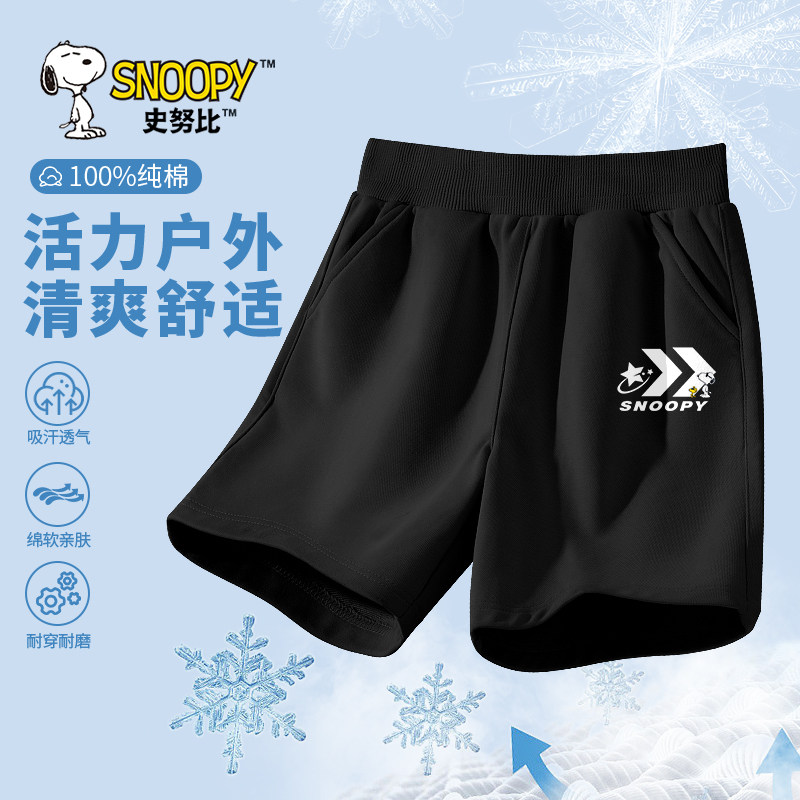史努比男童短裤夏季外穿纯棉五分裤男大童夏薄款裤子儿童运动中裤