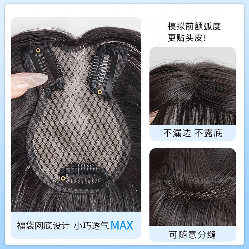 八字刘海假发女片头顶增发量蓬松彷真发假刘海高颅顶遮白发假发片