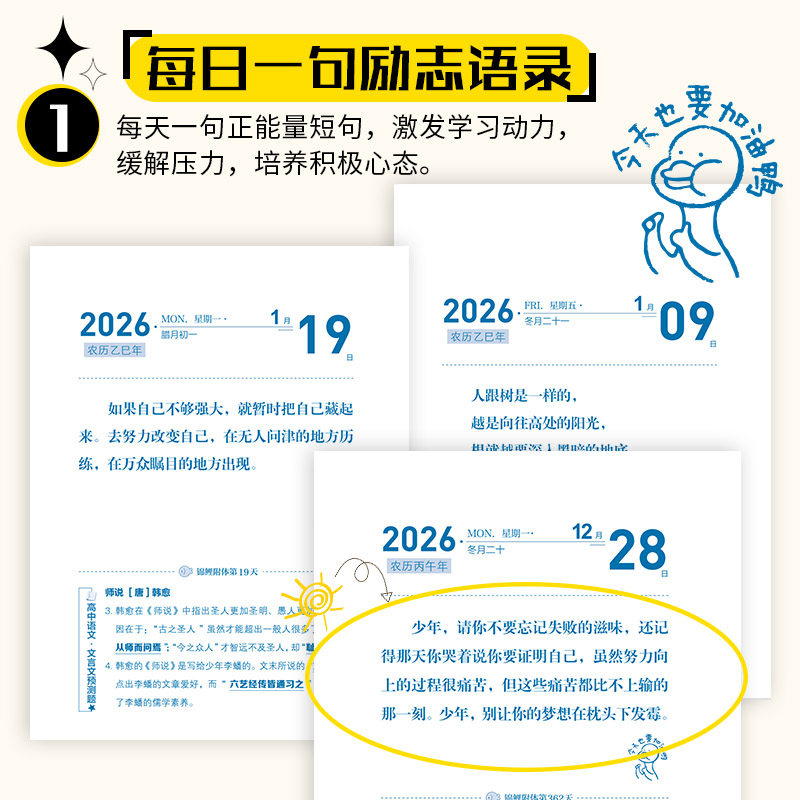 【官方正版】鱼跃龙门2026年高中生励志日历+化茧成蝶初中生励志日历金句初中高中语文英语考点梳理中考高考倒计时新款桌面台历本