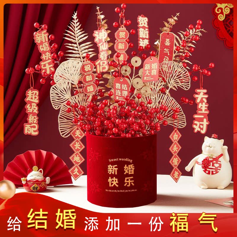 发财果红色红果冬青果假花仿真花摆设客厅新年装饰花婚庆花艺摆件