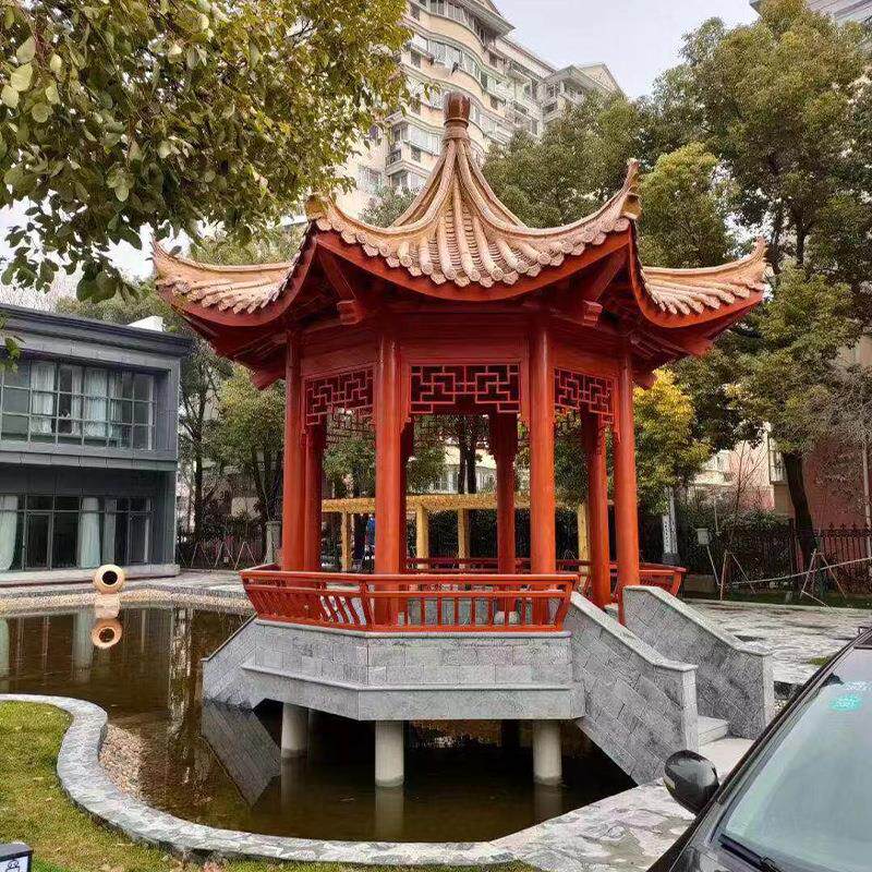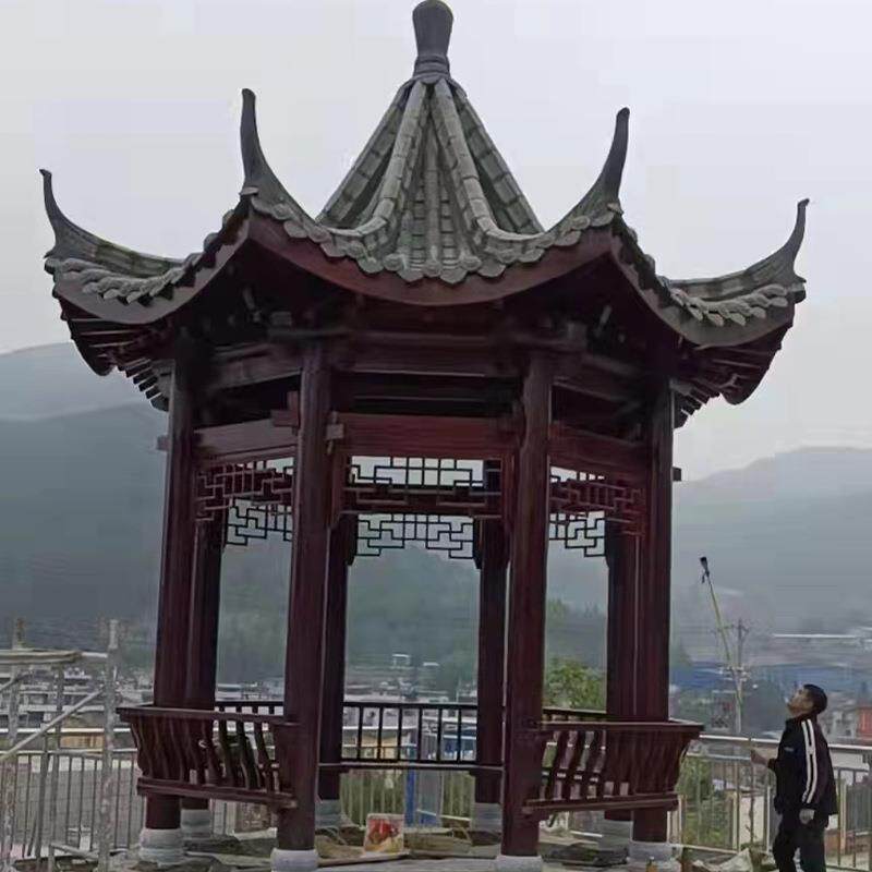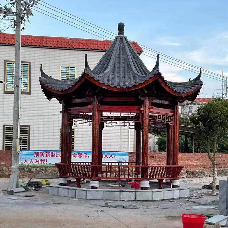 厂家木质碳化木户外防腐木实木古建园林景观夏季简约八角凉亭
