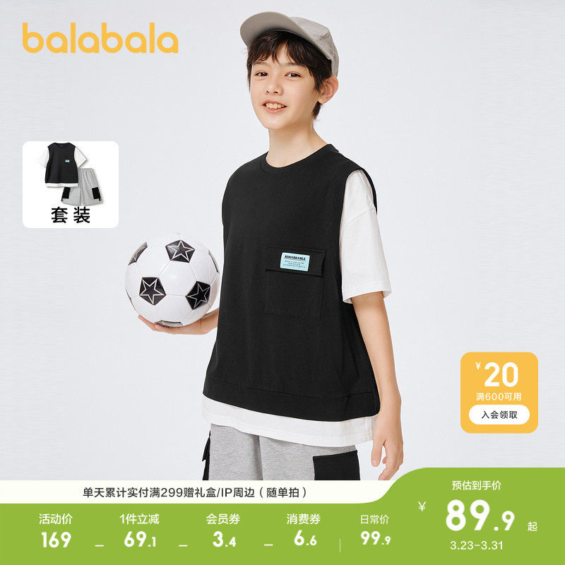 巴拉巴拉童装儿童套装夏装男大童短袖撞色亲子两件套潮酷时尚