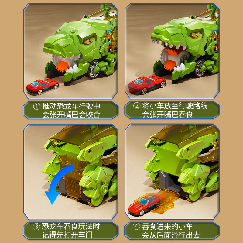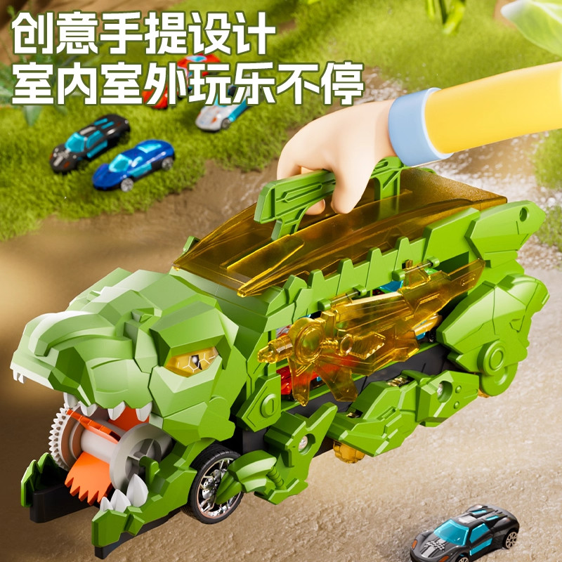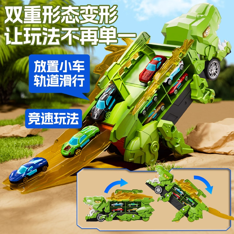儿童霸王龙恐龙玩具吞食轨道车变形滑行合金小汽车3到6岁新年礼物