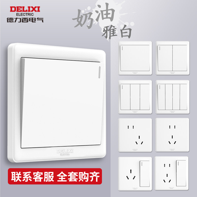 德力西开关插座家用五孔usb多孔空调16A奶油白面板86型暗墙壁开关