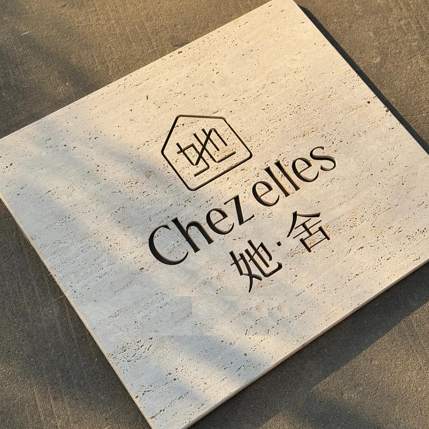 店铺营业时间提示标识天然石材门牌定制诧寂风洞石牌匾大理石LOGO设计中古风美容院招牌挂牌户外墙面创意灯牌