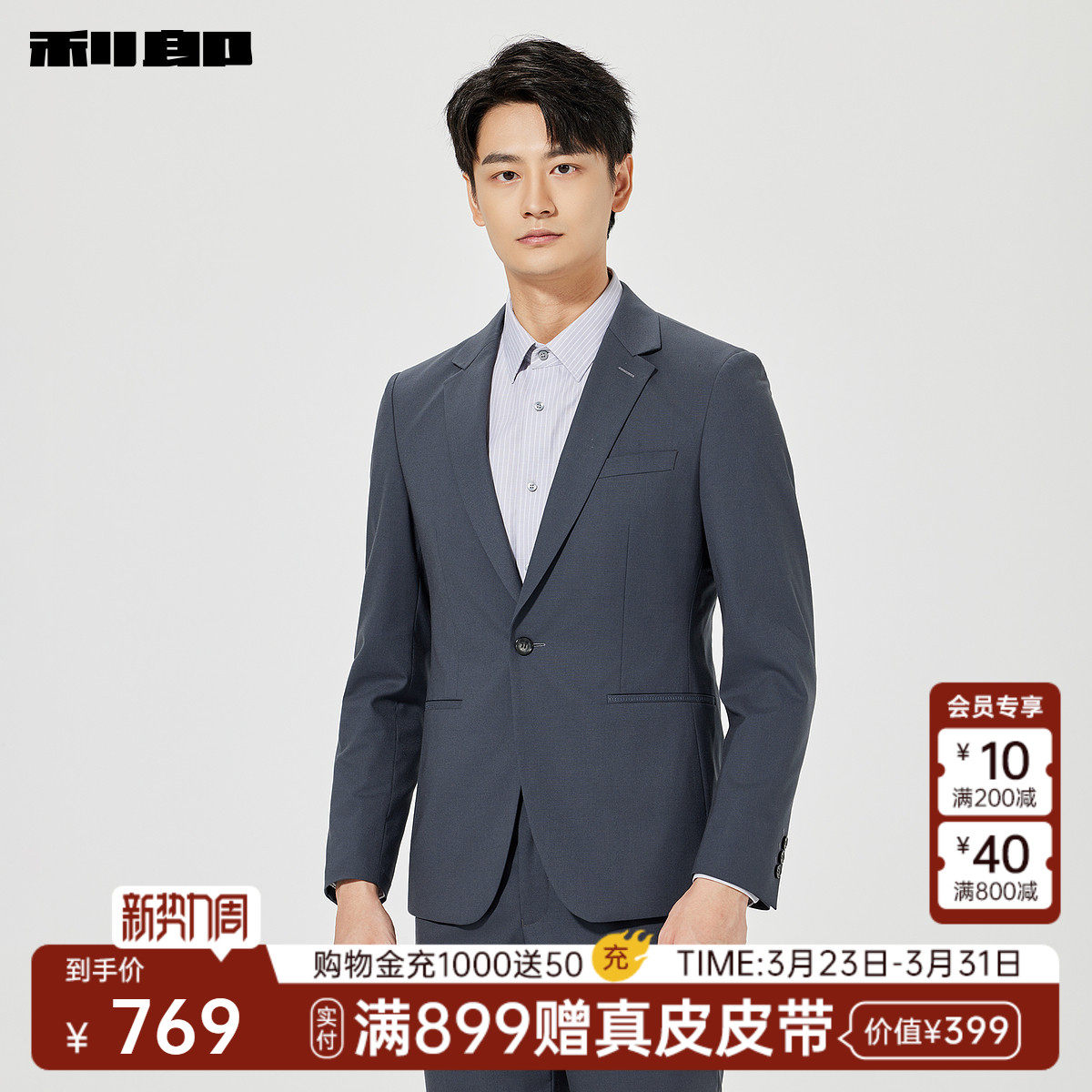 【绵羊毛】利郎官方 西服套装男士春季新款商务纯色西服两件套男