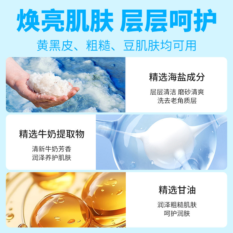 牛奶沐浴盐泡洗澡全身去角质鸡皮女男士专用沐浴露搓澡足浴磨砂膏