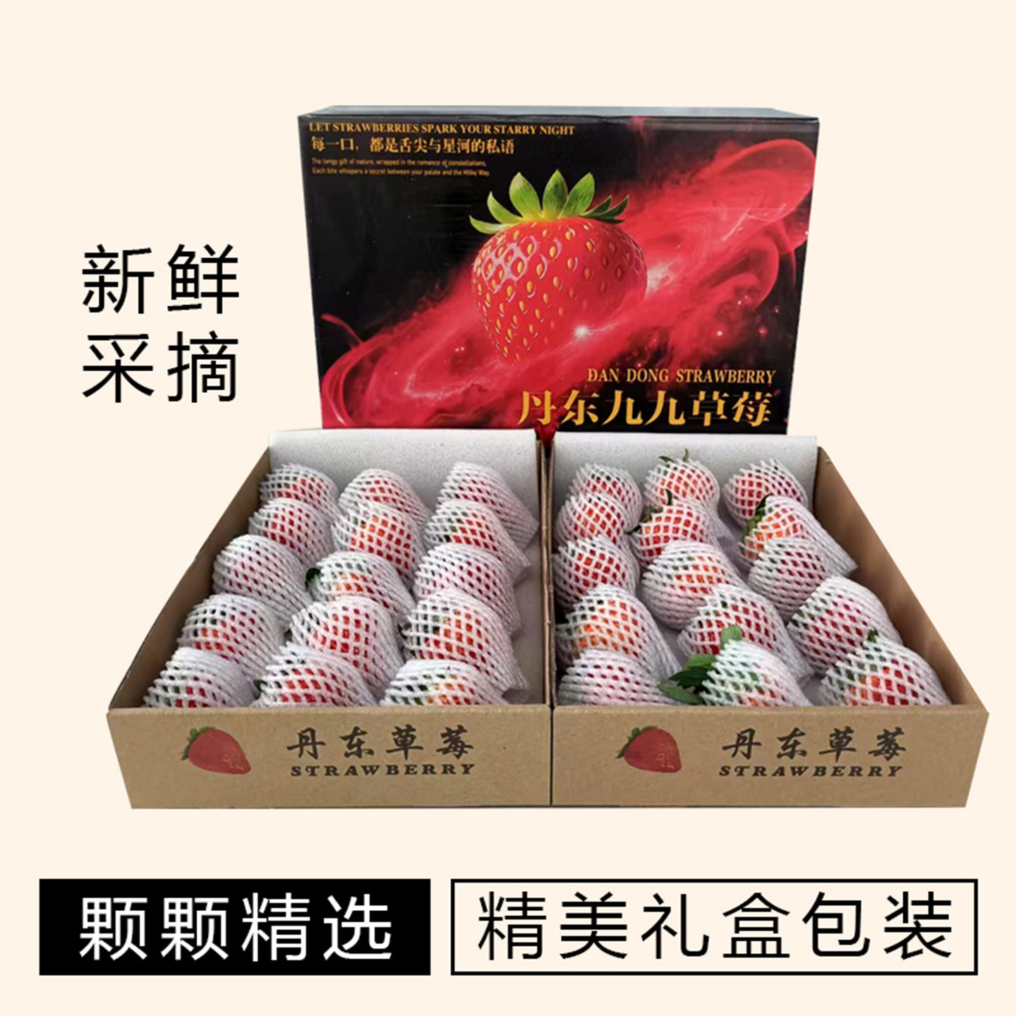正宗丹东99草莓特大新鲜水果九九红颜奶油礼盒装东港牛奶久久顺丰