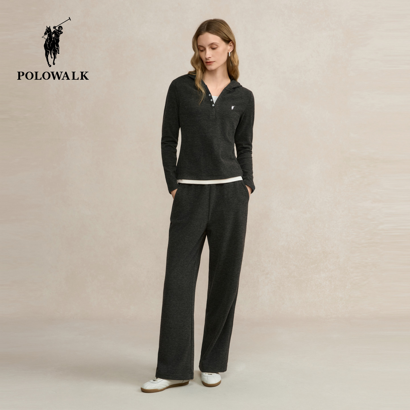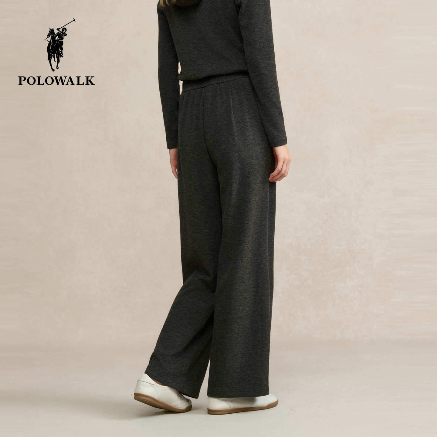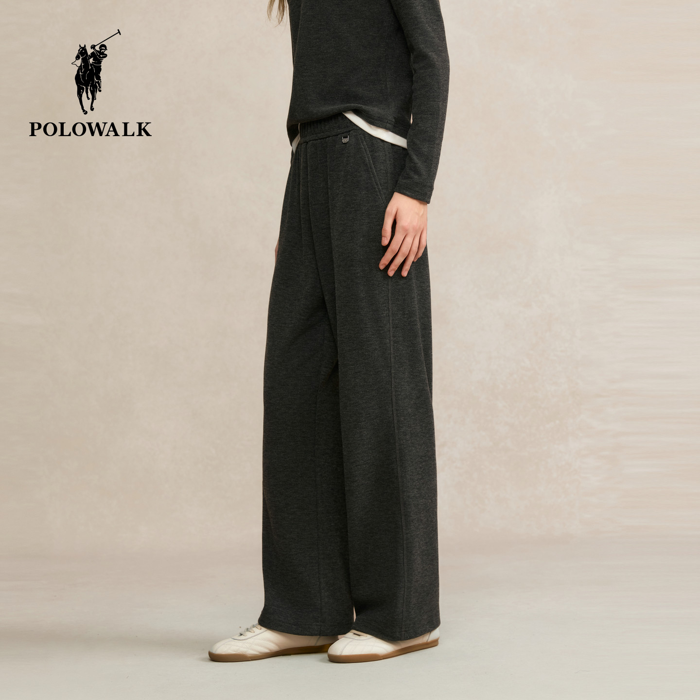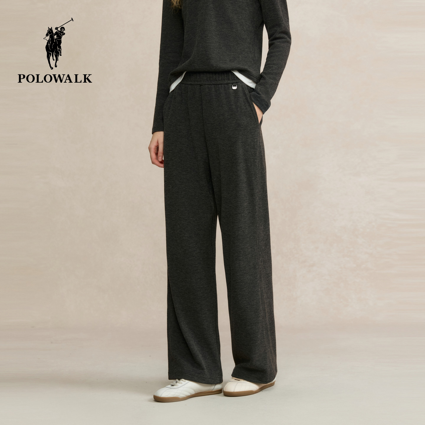 POLOWALK女式针织裤2025秋冬裤新品松紧腰直筒宽松休闲阔腿长裤子