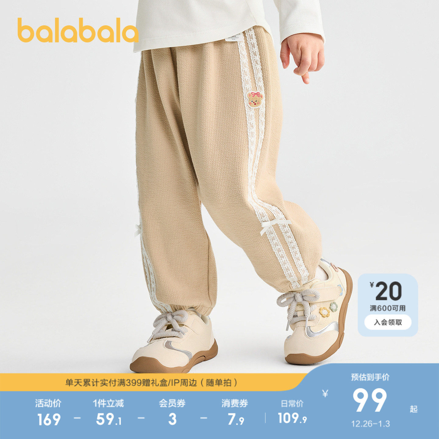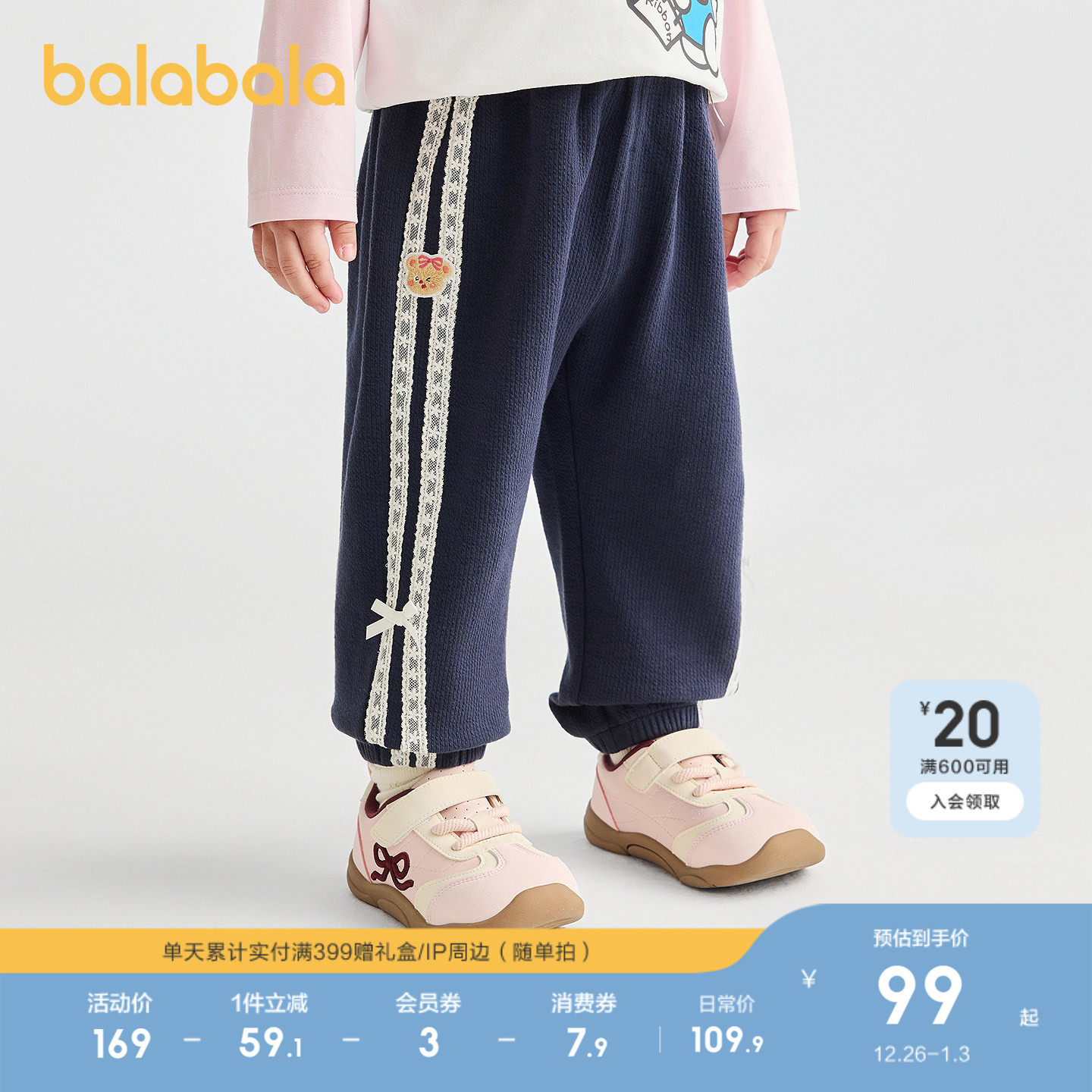 【商场同款】巴拉巴拉童装宝宝长裤宽松束脚裤女童2025秋新款裤子