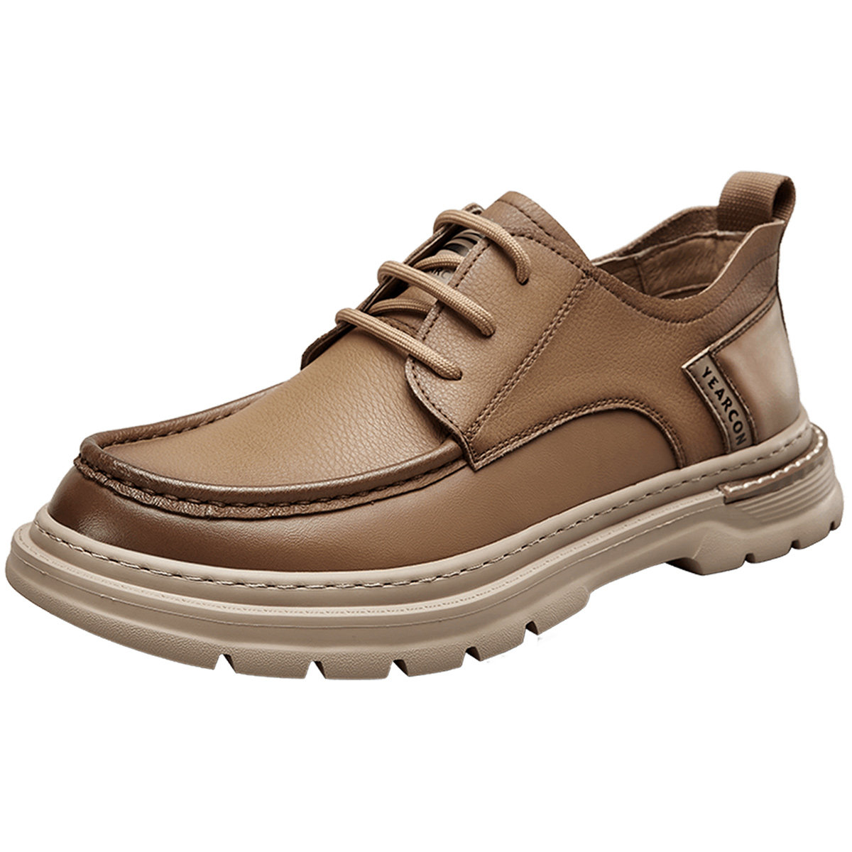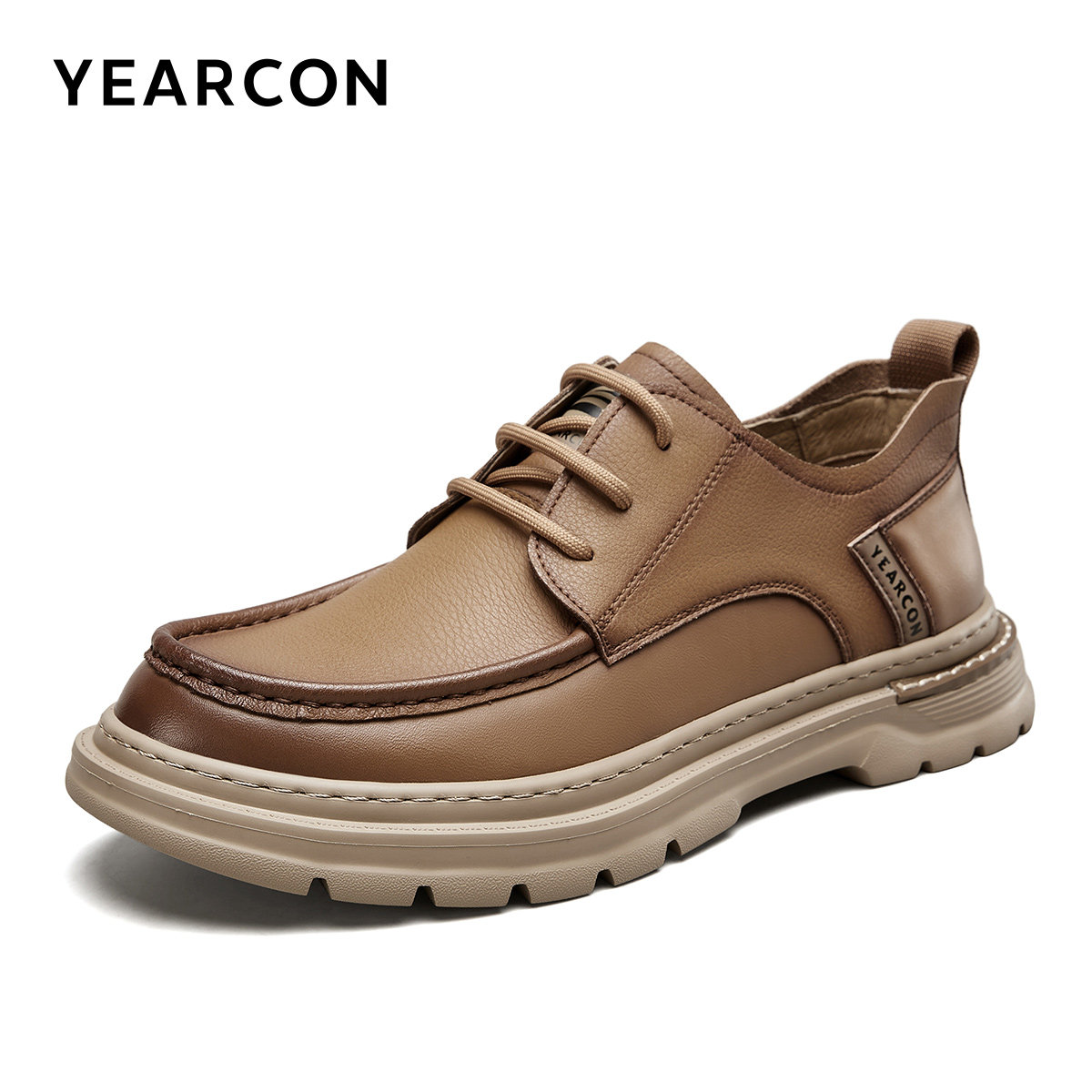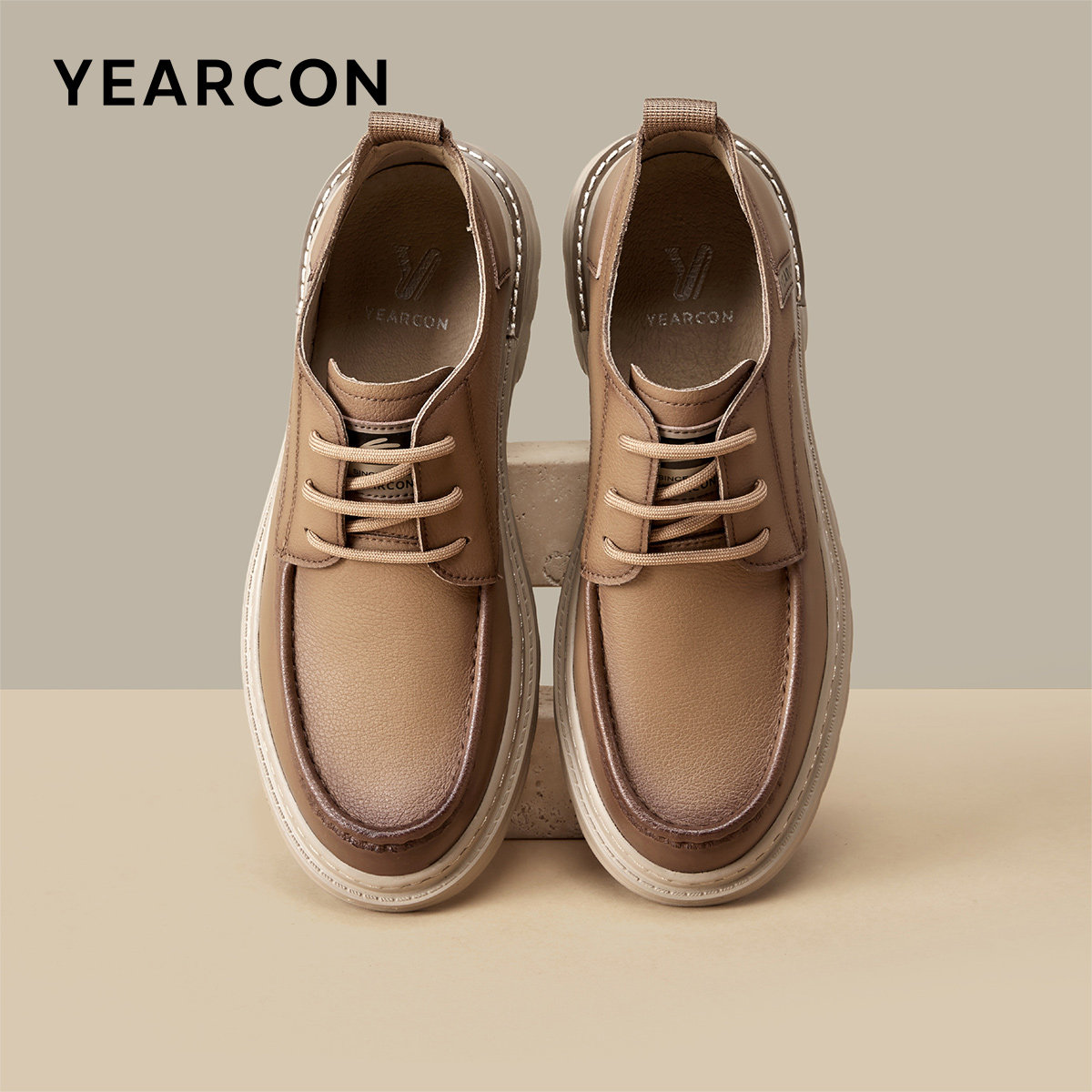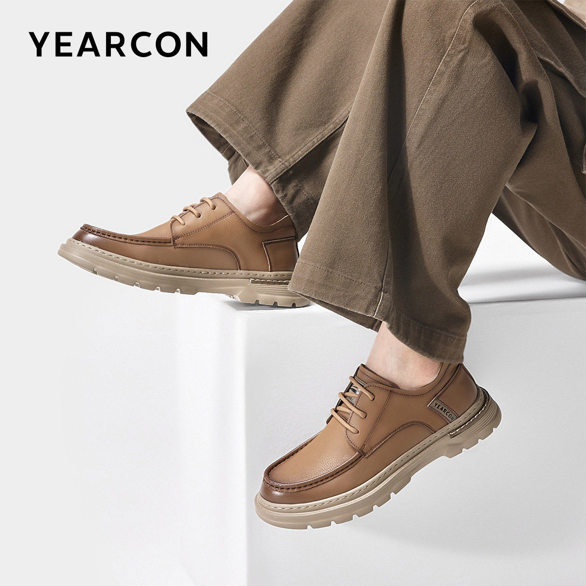 MRA棕色德比鞋男款2025新款秋季低帮大黄靴厚底增高大头工装皮鞋