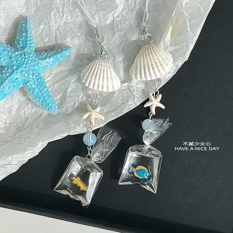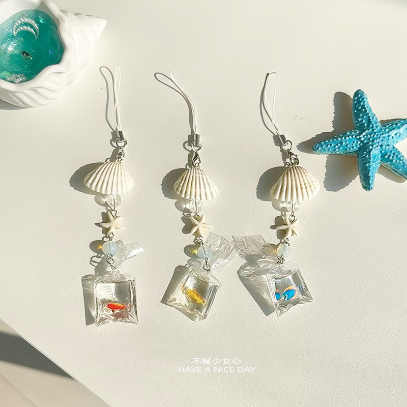 一袋金鱼呀!贝壳手机挂件手工串珠包挂钥匙扣ccd挂链包挂件