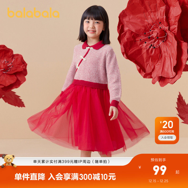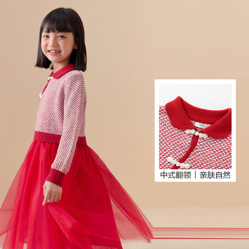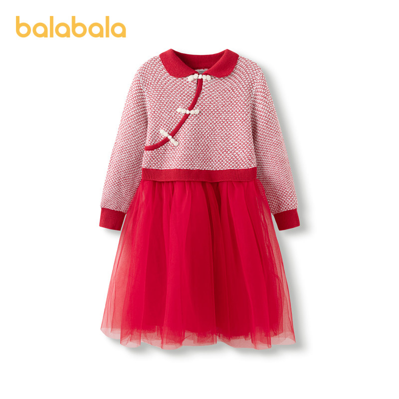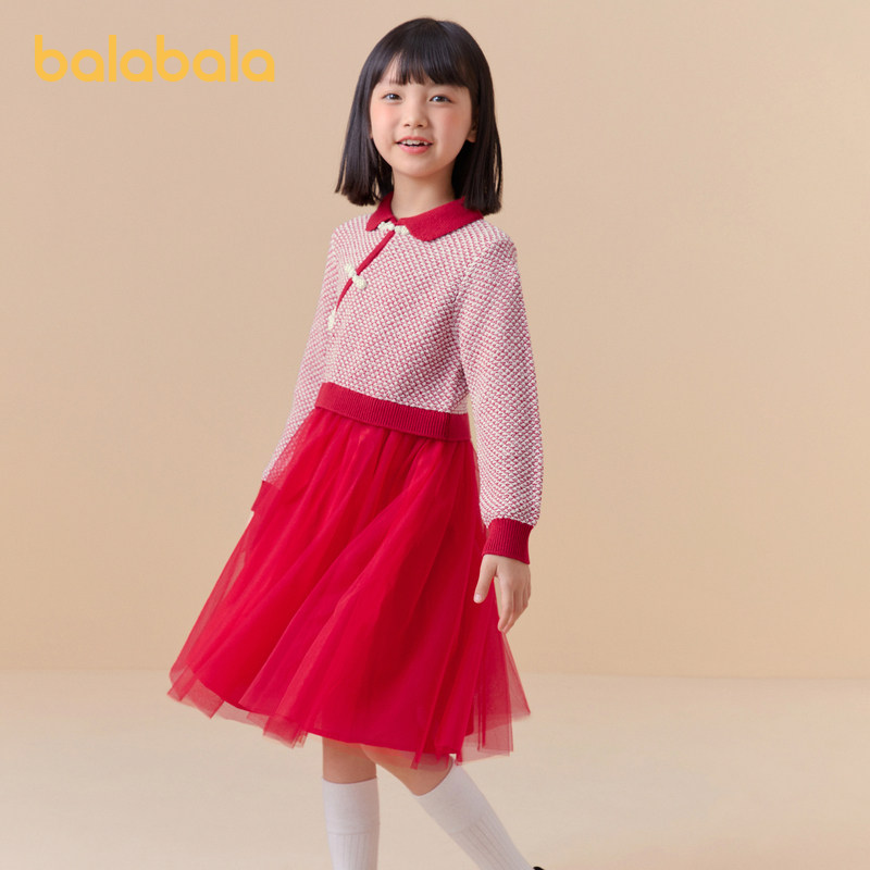 巴拉巴拉女童连衣裙儿童裙子新款国风毛衣网纱裙