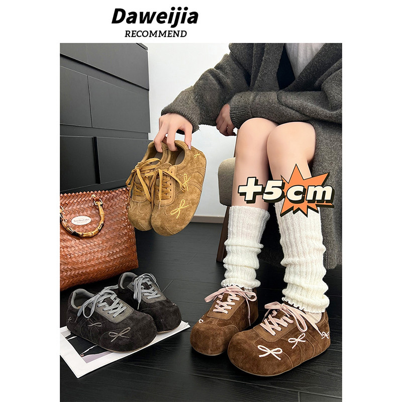 真皮~骄屿内增高芭蕾德训鞋女新款复古百搭休闲阿甘鞋厚底运动鞋