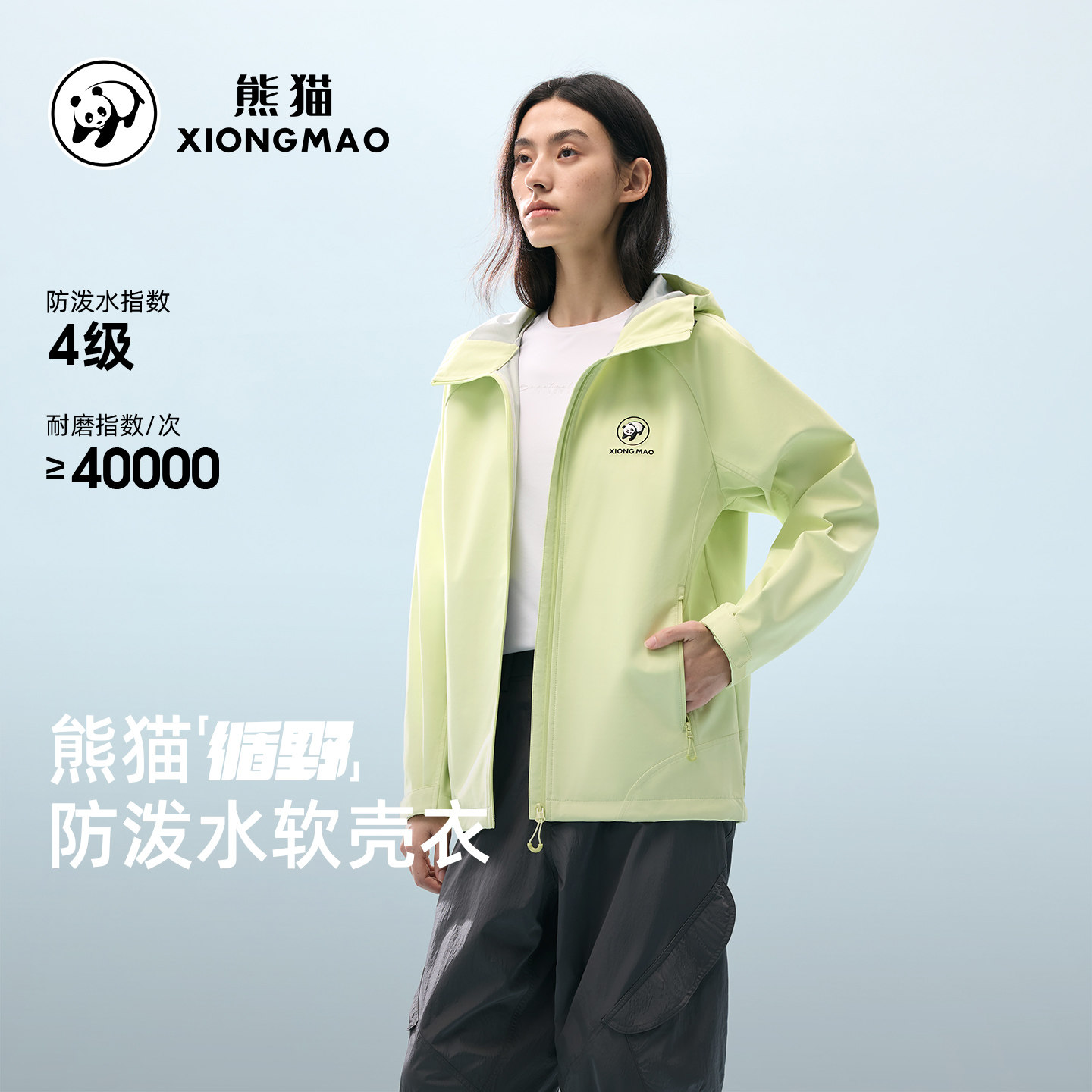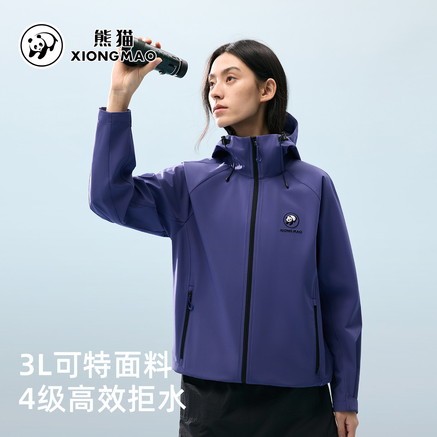 熊猫循野软壳衣短外套女春2026新款休闲连帽防风水夹克登山骑行服