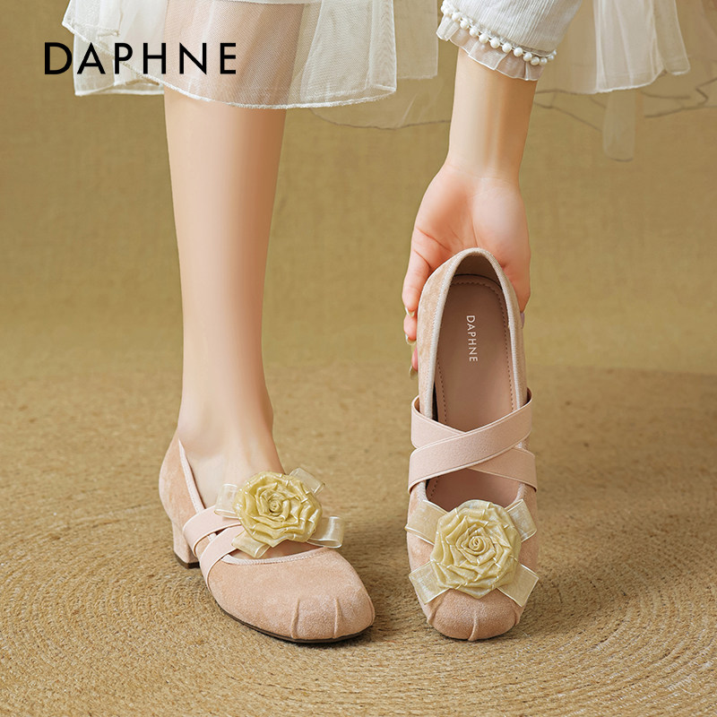 达芙妮山茶花法式玛丽珍鞋女2026新款春季巨好看绝美单鞋高跟芭蕾