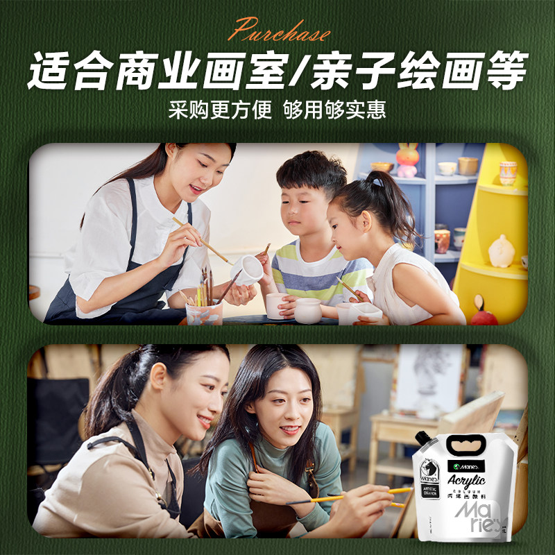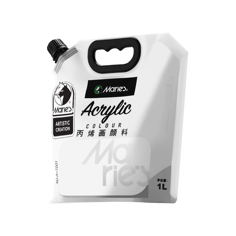 马利丙烯颜料白色大容量墙绘专用1L袋装大桶装大瓶批发白防水防晒不掉色涂鸦染料丙烯画黑色马利牌儿童画画