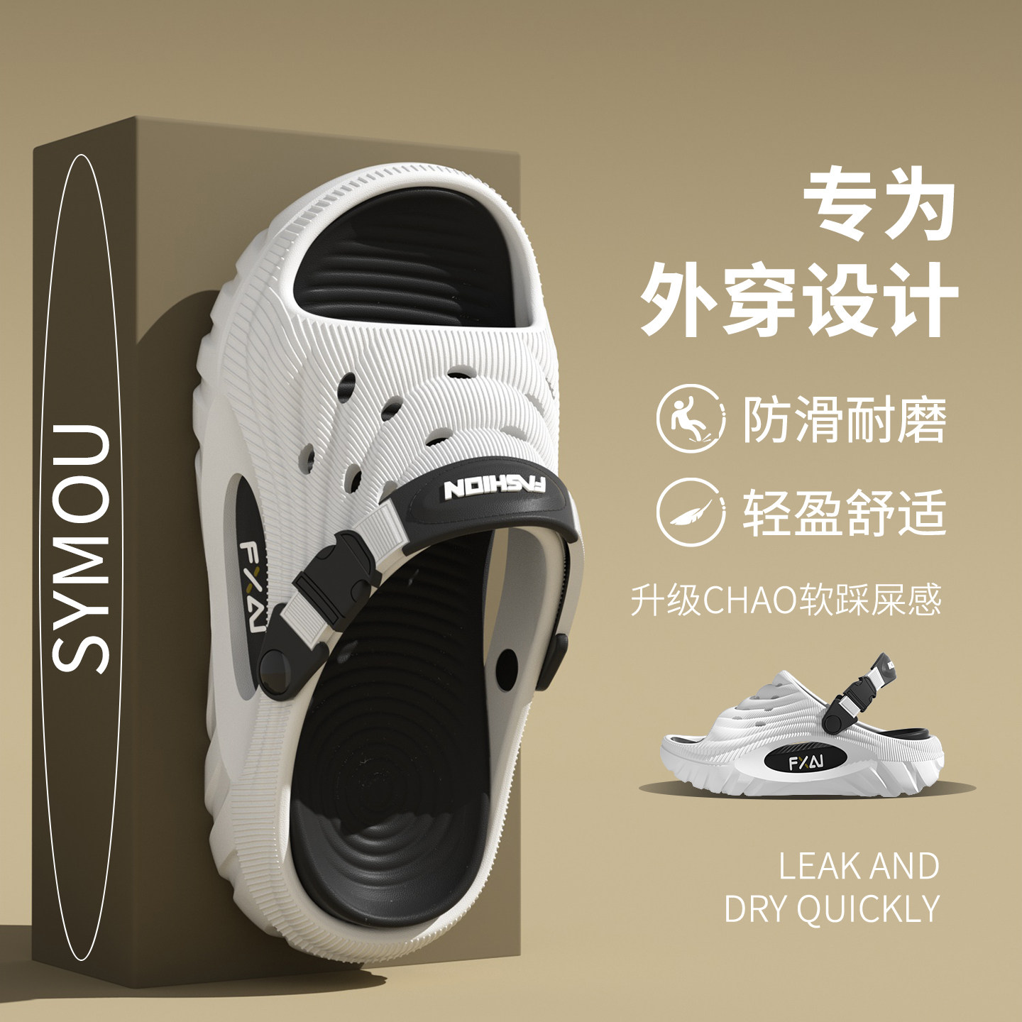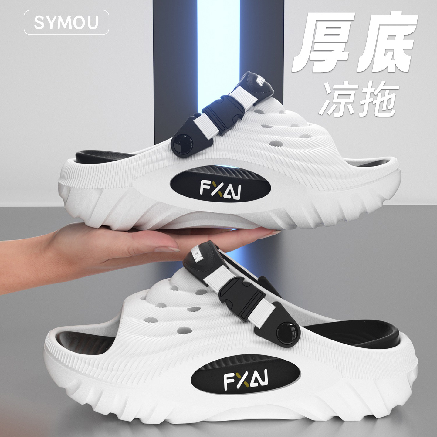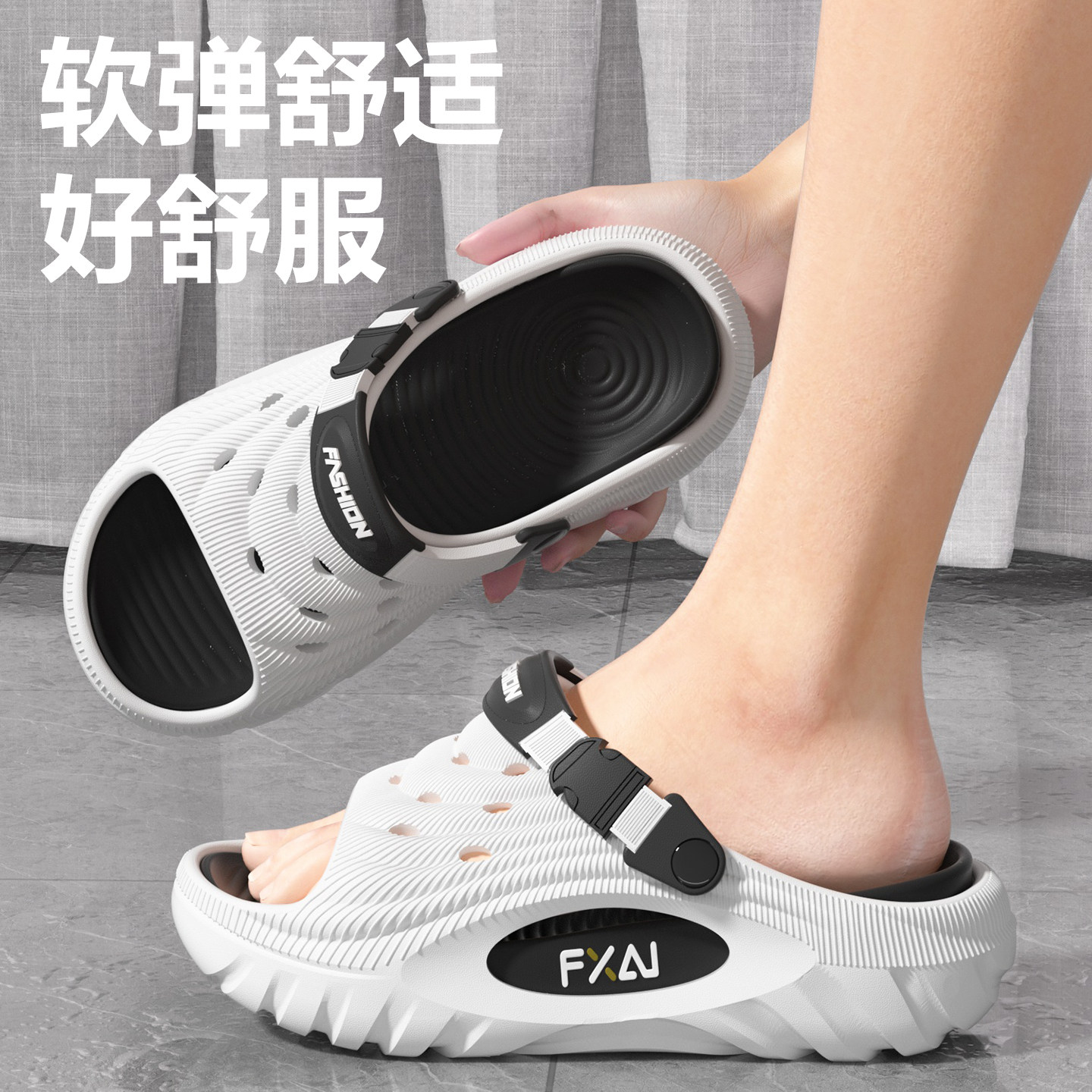 赛眸外穿洞洞鞋男士2026新款时尚潮流厚底防滑两穿拉带凉拖鞋男款
