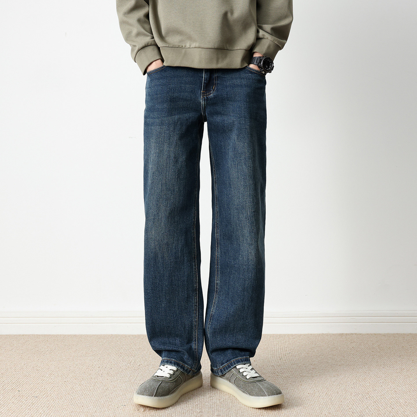森柔牛仔森马牛仔裤男裤子新款中蓝潮宽松直筒裤子男复古百搭猫须