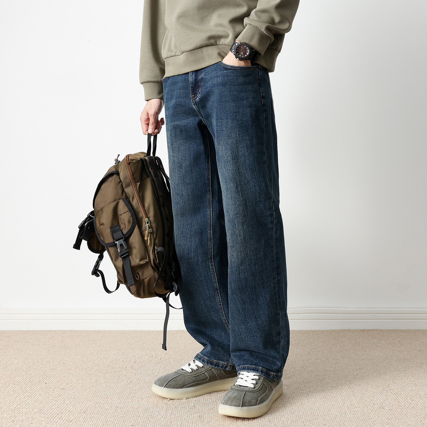森柔牛仔森马牛仔裤男款2025新直筒裤长裤原色复古美式水洗宽松潮
