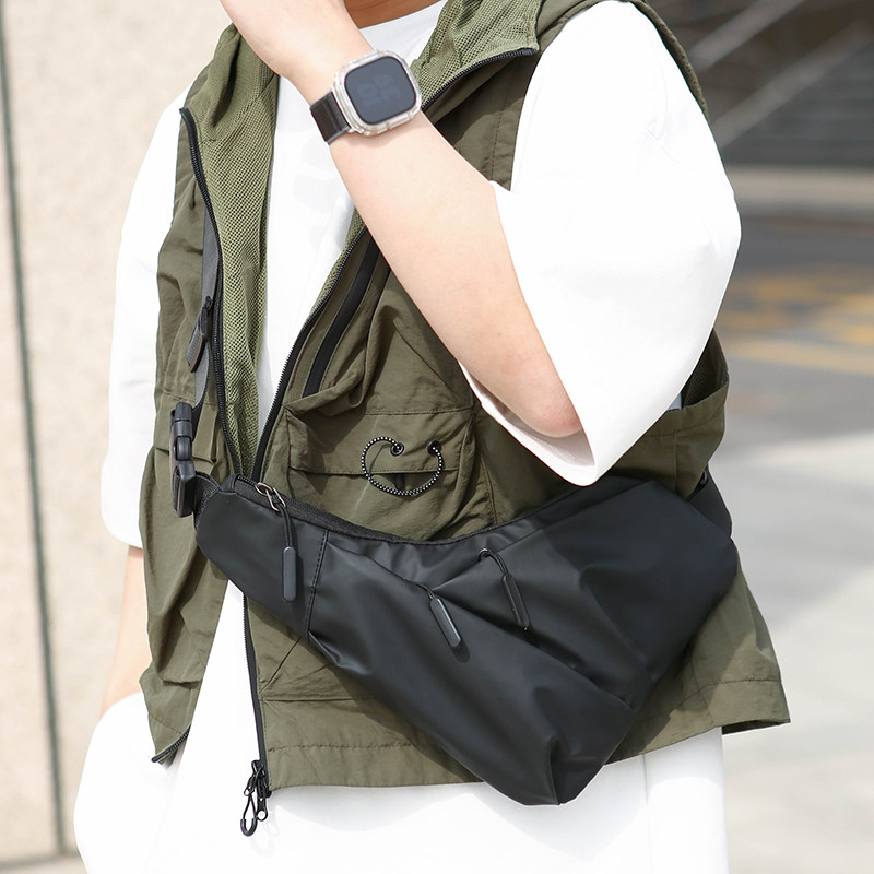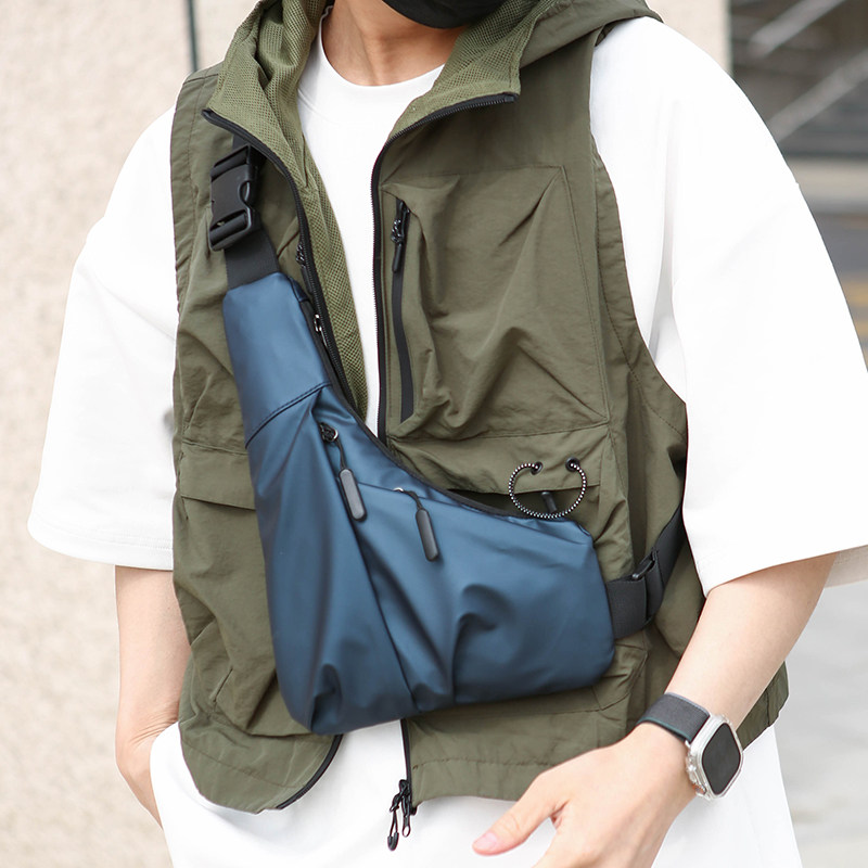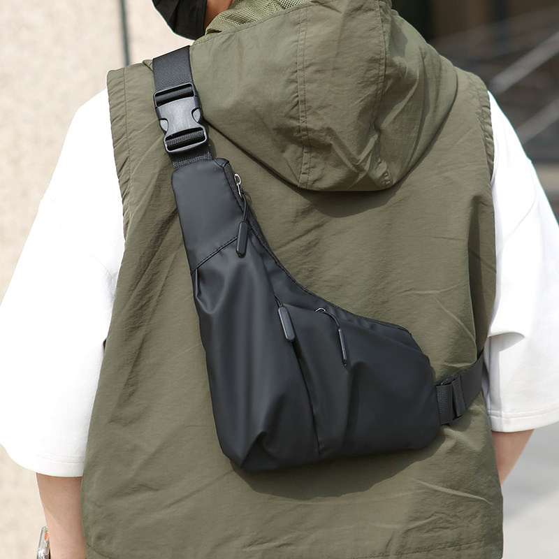 2025新款男士斜挎包防水运动单肩包休闲大容量胸包磁吸扣通勤时尚