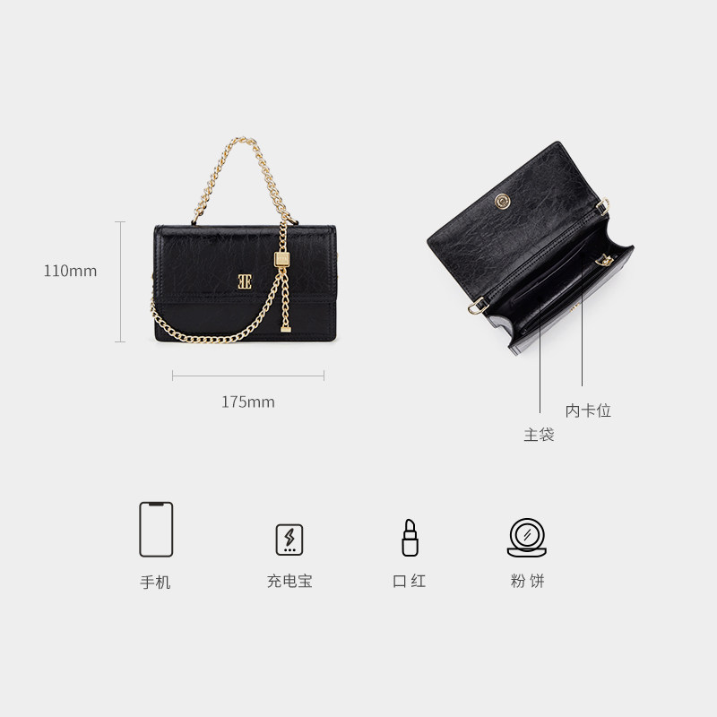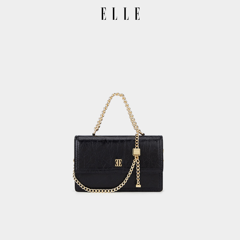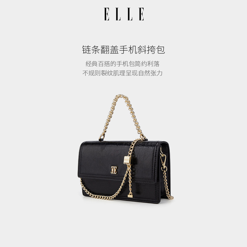 ELLE女包2025新款包包链条翻盖手提斜挎包小方包女黑色百搭单肩包