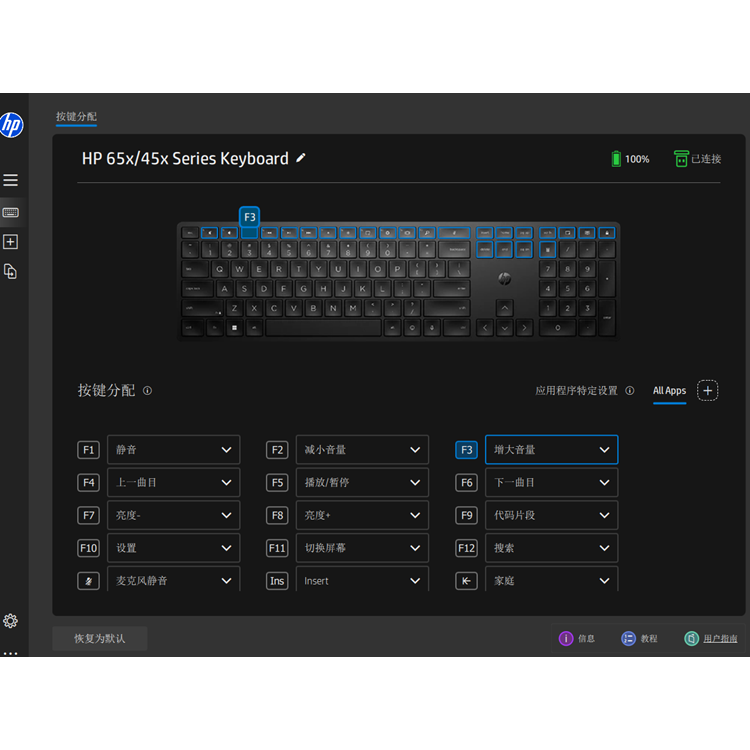 惠普455可编程无线单键盘 超薄笔记本台式机电脑107键位2毫米键程