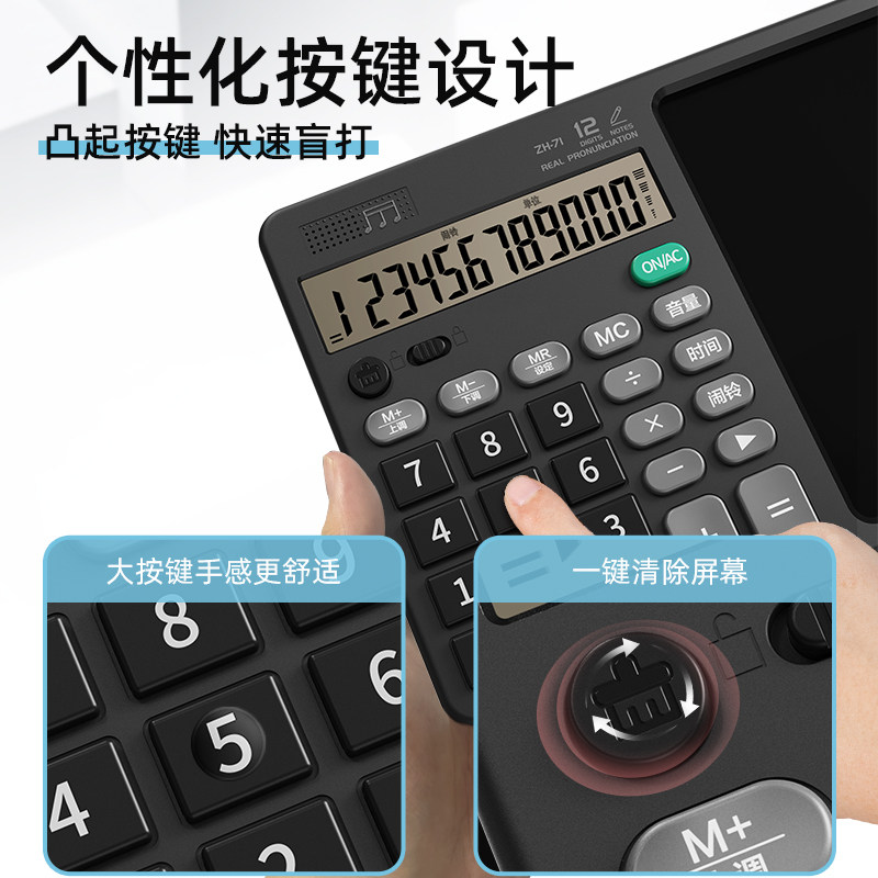达芬奇蒙语音计算器记账草稿大屏手写板金融会计财务商务办公专用记算机智能真人发音多功能USB充电送父亲节