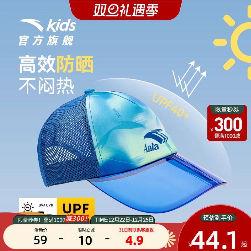 安踏儿童防晒帽夏季款男童女孩遮阳帽太阳帽透气棒球帽帽子鸭舌帽