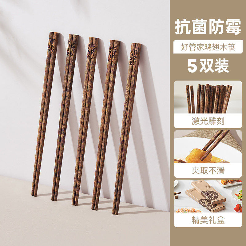 好管家鸡翅木筷子5双家用高档无漆无蜡多规格