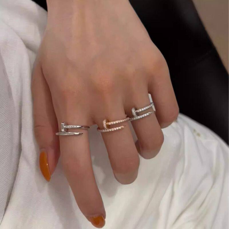 钉子戒指镀18k玫瑰金螺丝钉窄版指环轻奢宽版对戒男女情侣黄金