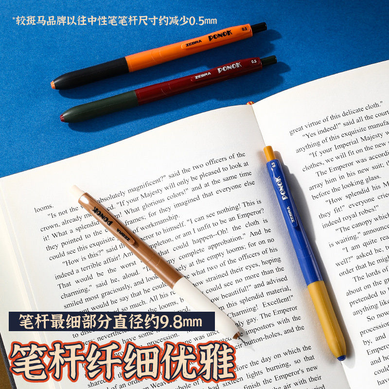 日本zebra斑马中性笔PONOK宝乐可JJ9顺滑大容量半针管笔按动 式初中生刷题考试黑笔0.5黑色笔芯速干05mm