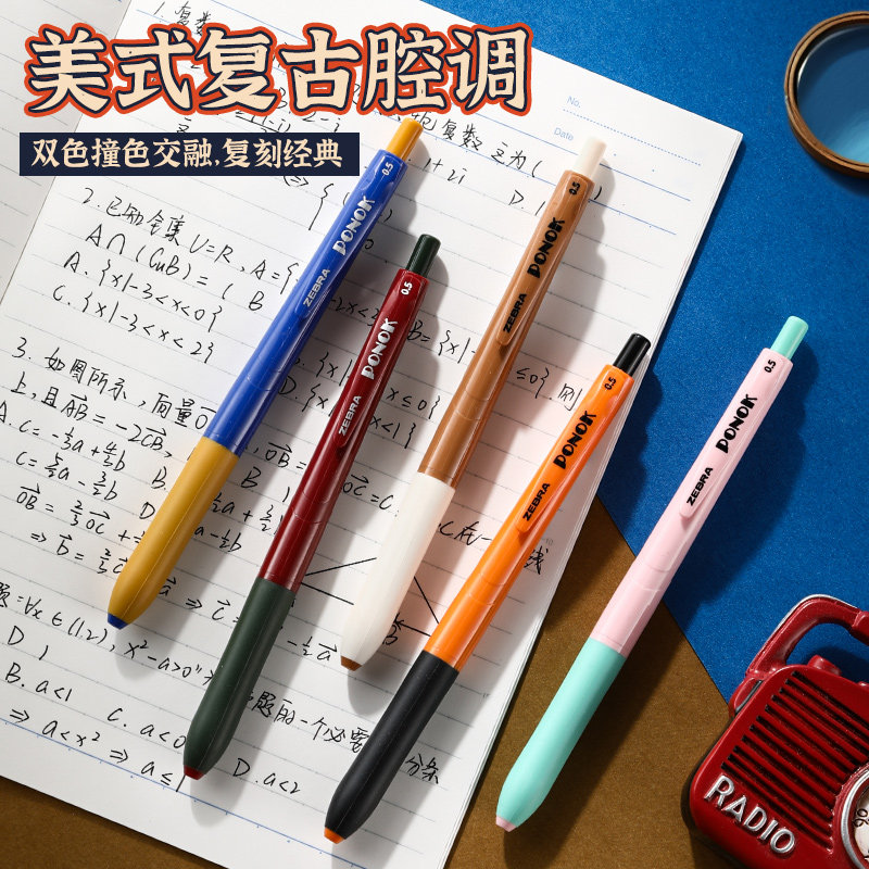 日本ZEBRA斑马官方旗舰店官网JJ15复古系列SARASA按动式中性笔彩色驼黄湖蓝黑加仑水笔可换替芯0.5笔夹限定款