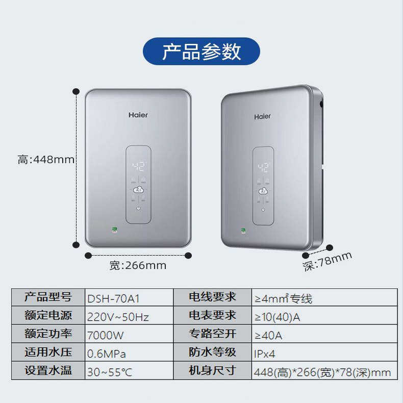 海尔电热水器租房洗澡专用热水器速热小型卫生间洗澡神器70A1