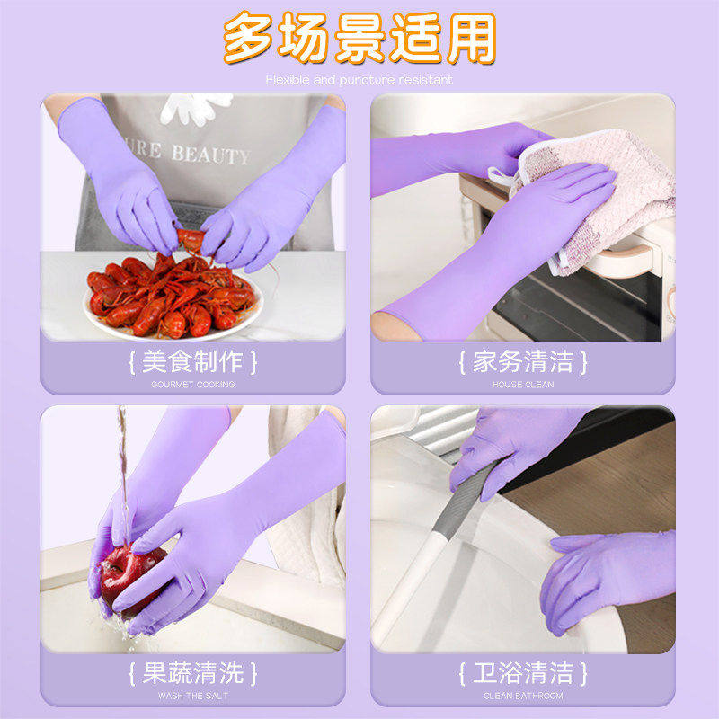 丁腈手套家务洗碗厨房耐用一次性加厚加长食品级乳胶洗衣服防水