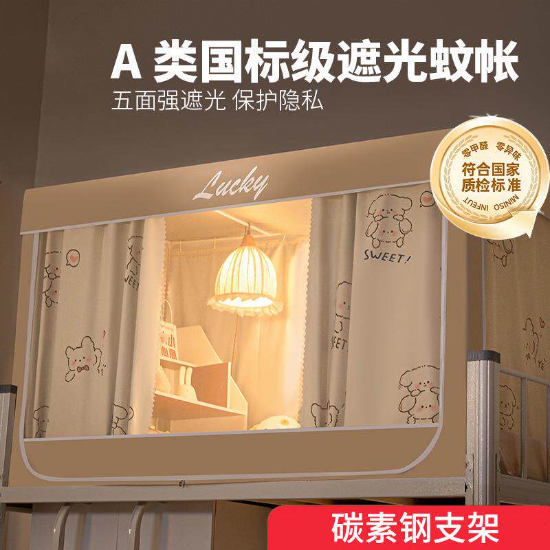 强遮光学生宿舍蚊帐一体式床帘上下铺单人床全罩式免安装寝室床幔