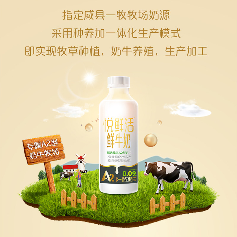 悦鲜活950ml鲜牛奶A2-/950ml分享装儿童学生早餐奶鲜奶生牛乳瓶装