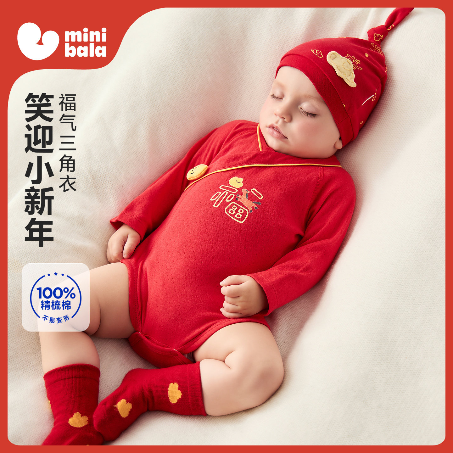 迷你巴拉巴拉婴儿衣服宝宝新生儿连体衣包屁衣纯棉红色满月百天礼