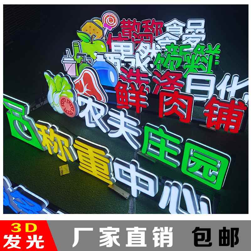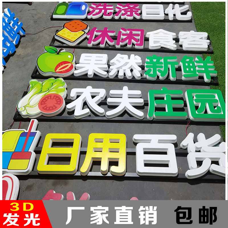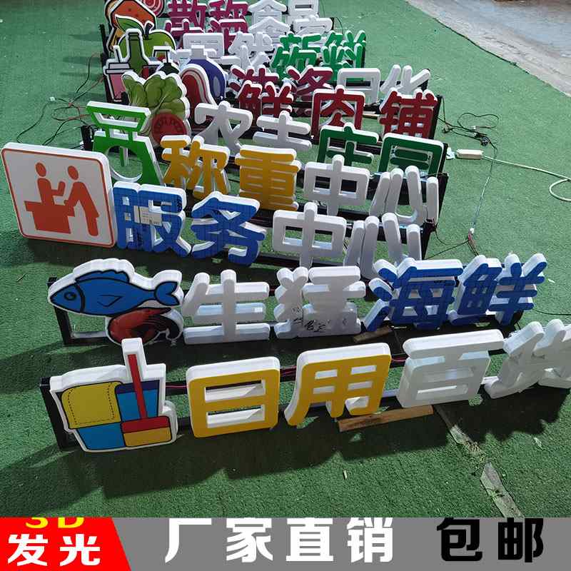 立体发光字超市分区吊楣分类指示牌商场区域3D字广告牌超市入口