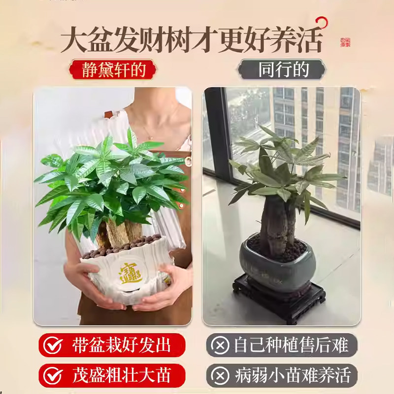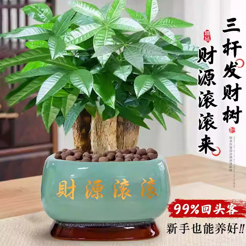 发财树小盆栽三杆开业招财绿植物办公室客厅旺宅盆景好养桌面大气