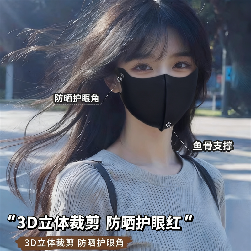蕉下防晒口罩腮红护眼角3d立体开车防紫外线女黑色夏冰丝遮阳面罩