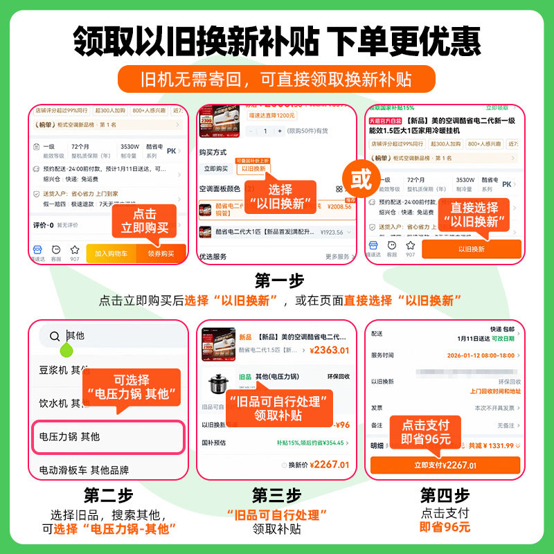 美的空调新一级能效家用大1.5匹2匹变频冷暖挂机2026款酷省电二代