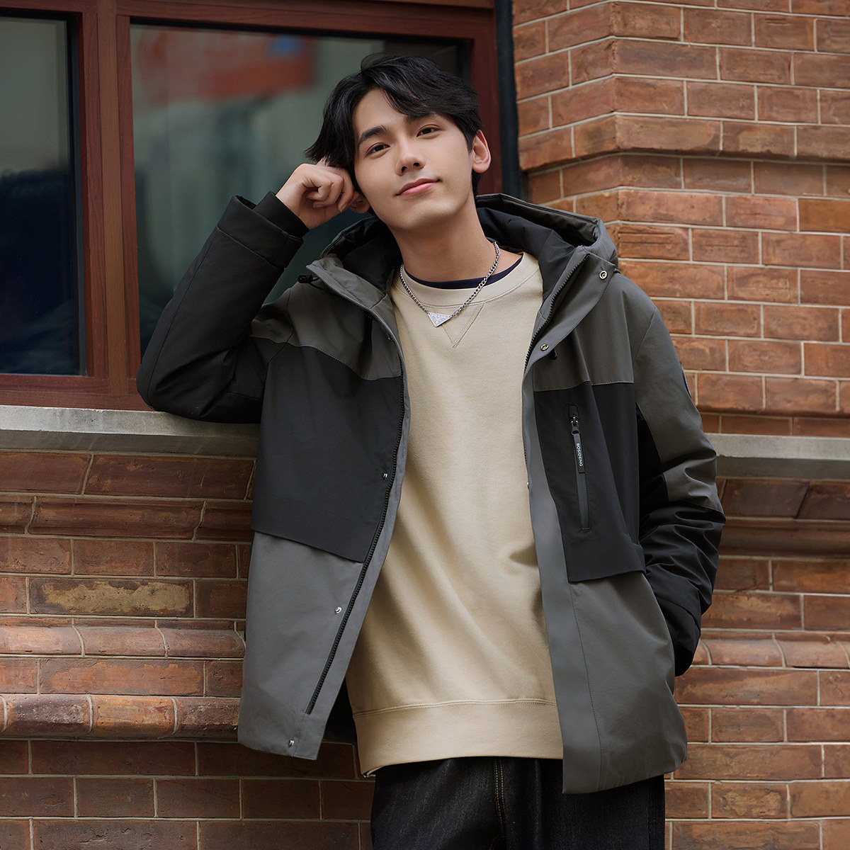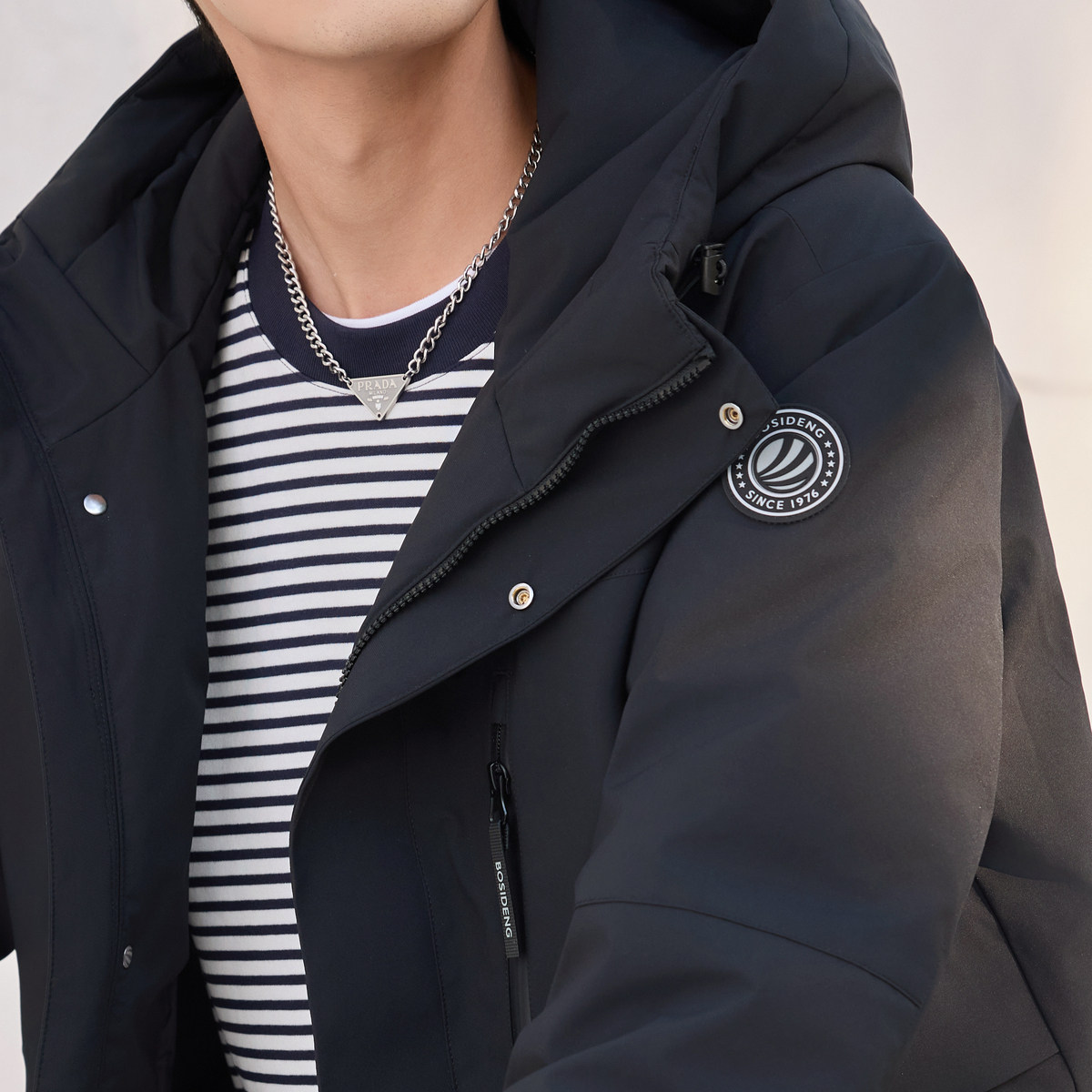 波司登冬季男士简约时尚休闲通勤工装廓形短款连帽羽绒服外套
