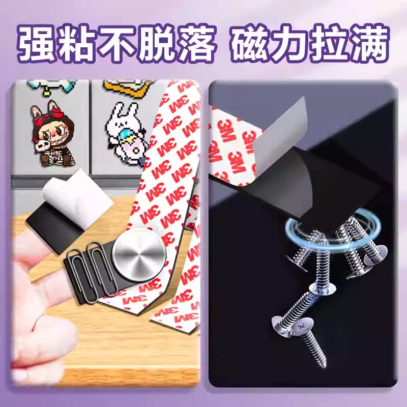 拼豆冰箱磁吸贴片磁力贴磁性黑板贴强力3M背胶软磁吸公开课白板书展示墙贴磁条磁贴教具卡片自粘上课用吸铁石