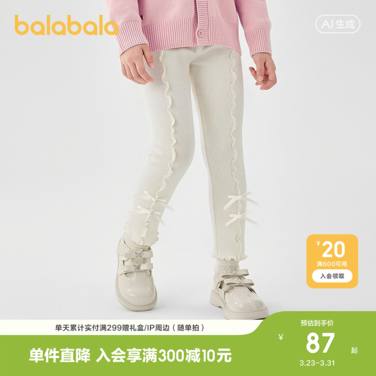 【商场同款】巴拉巴拉童装儿童打底裤女童2026新款春秋弹力保暖裤