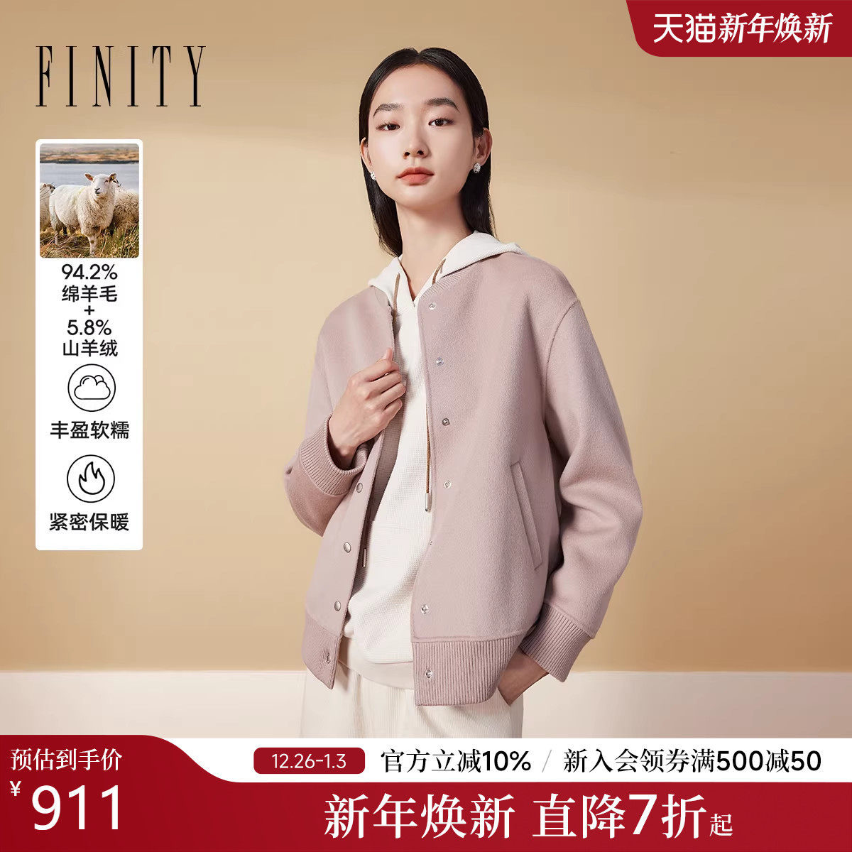 FINITY菲妮迪毛呢外套2025冬季新款短款双面呢气质保暖大衣女