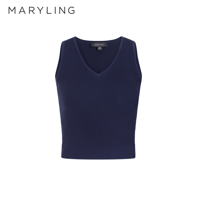 MARYLING玛俪琳2025春季新品V领短款针织背心A1FBW07660