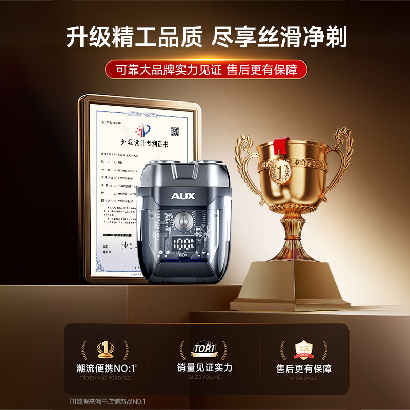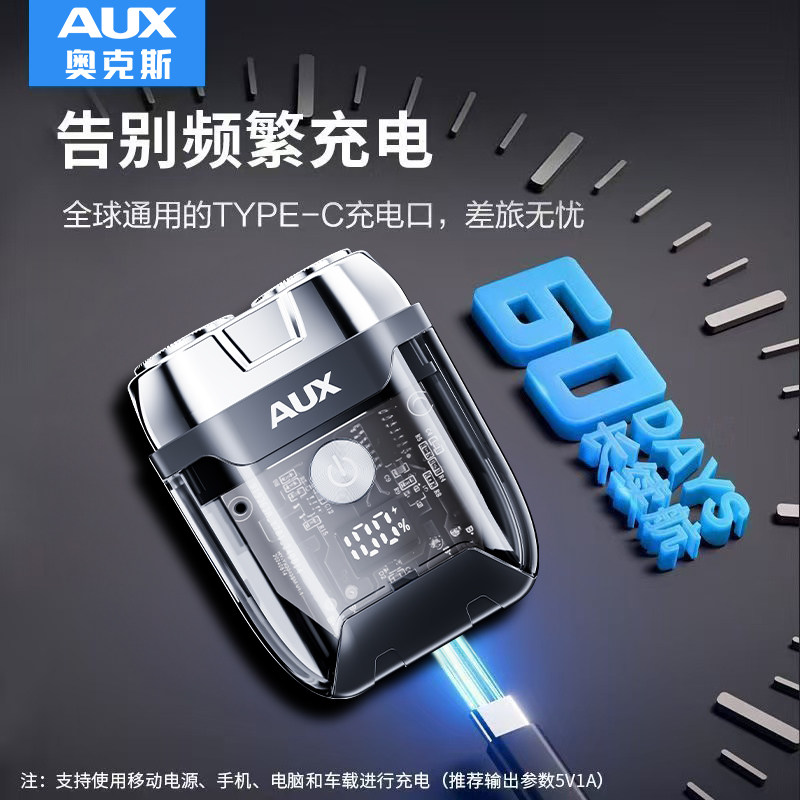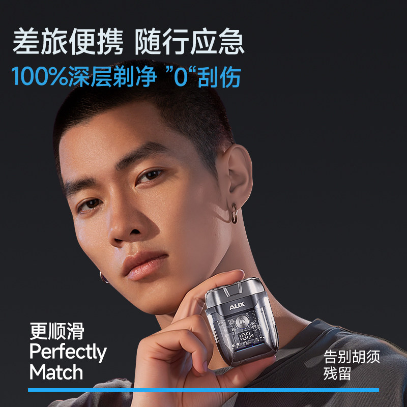 奥克斯剃须刀电动男士刮胡刀迷你便携小巧机甲水洗不留黑点送男友